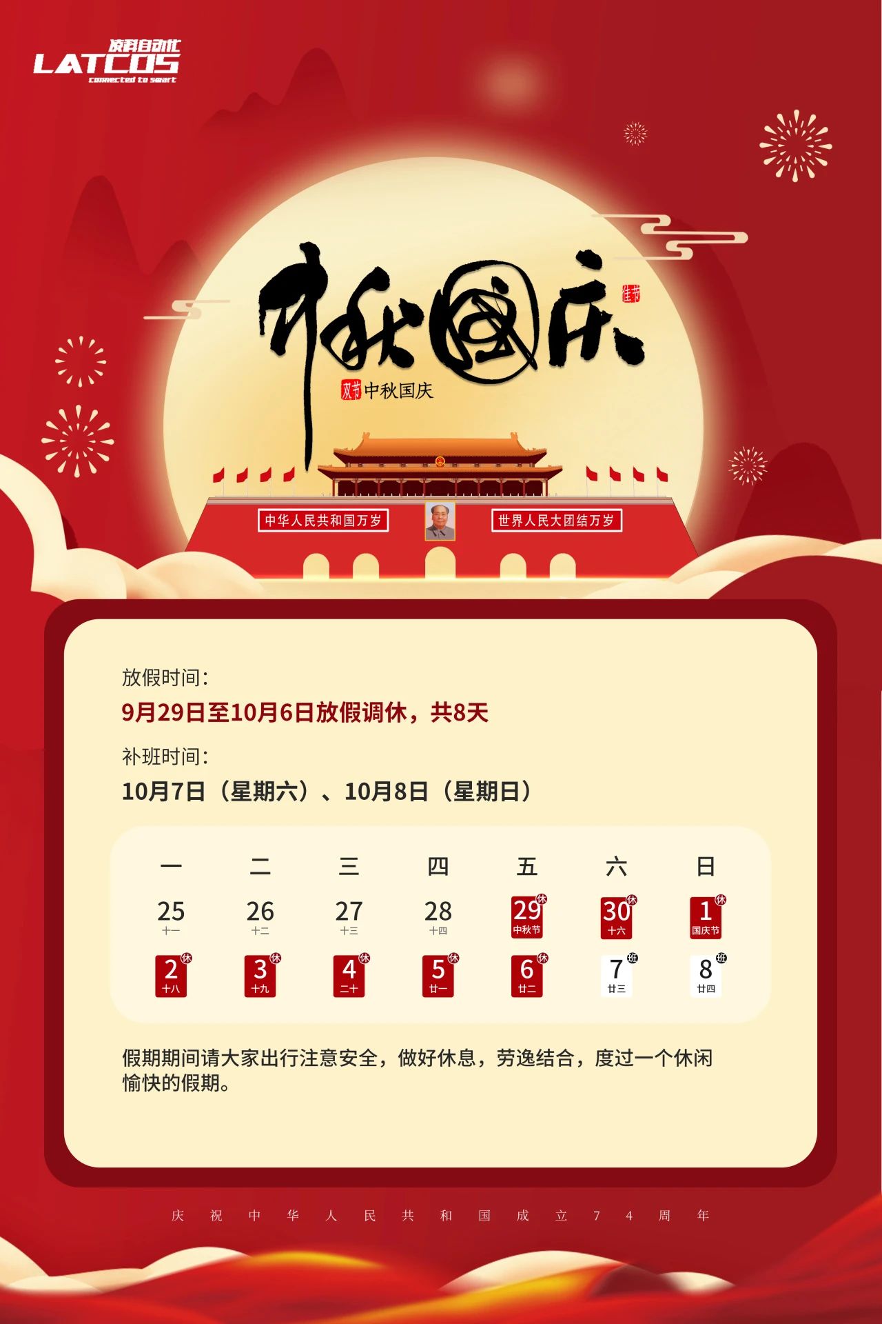 中秋佳節與國慶盛典同一時刻降臨,讓我們共慶這充滿喜悅和團聚的美好時光!在這個特殊的日子里,送上無錫凌科最誠摯的祝福: