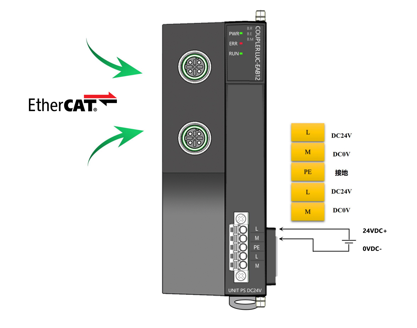 薄片型多功能分布式I/O,ETHERCAT耦合器,2xM12,可級聯,可擴展32個模塊,24VDC