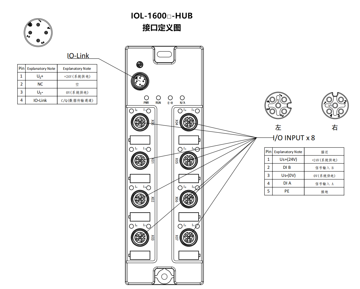 信號接口:8×M12,A-Code,5P孔