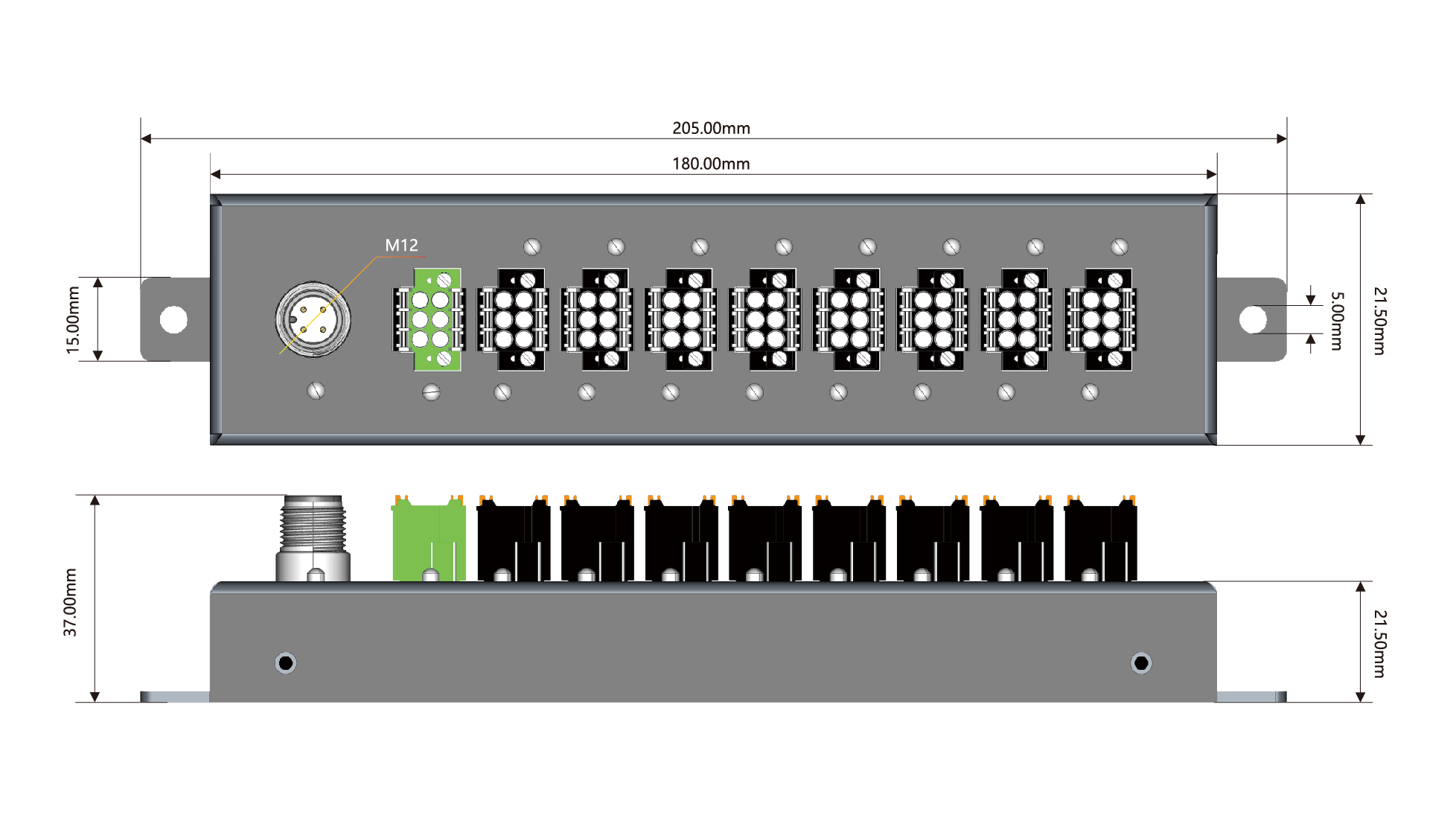 信號接口:黑色,2*3P歐式可插拔彈簧端子,帶鎖定功能
