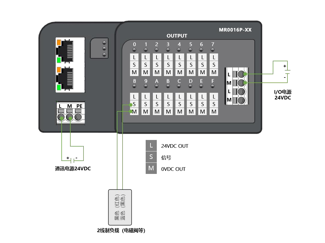 電源接口:模塊供電:3P歐式彈簧端子;負載供電:4P歐式彈簧端子