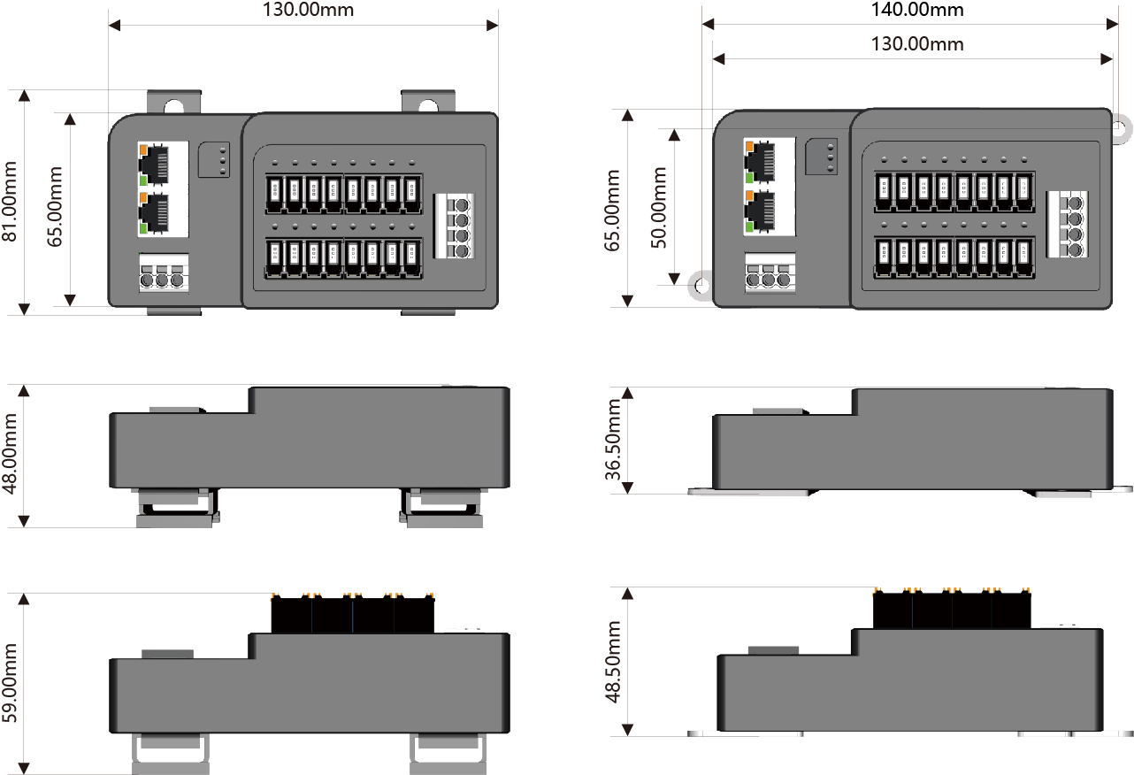 安裝方式:DIN35導軌安裝或雙側耳打孔安裝